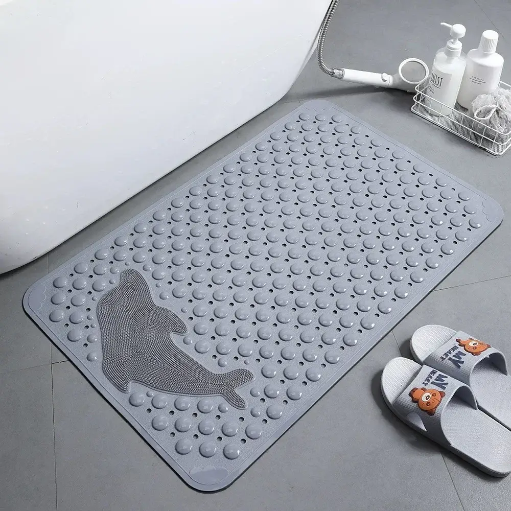 Τοποθετήστε το αντιολισθητικό πατάκι μπάνιου 45×75 HT-6 στο ντους ή δίπλα στην μπανιέρα. Το πατάκι σταθεροποιεί τα βήματά σας με την ανάγλυφη επιφάνεια και τις φυσαλίδες που προσφέρουν άνετο πάτημα. Χρησιμοποιήστε το ειδικό σχέδιο δελφινιού για να τρίψετε απαλά τα πέλματα ή για απολέπιση νεκρών κυττάρων. Το πατάκι προσφέρει μεγαλύτερη ασφάλεια σε σπίτια με παιδιά, ηλικιωμένους ή σε χώρους όπου χρειάζεται σταθερότητα. Καθαρίστε το εύκολα με νερό και ήπιο σαπούνι και αφήστε το να στεγνώσει φυσικά πριν το επόμενο ντους.