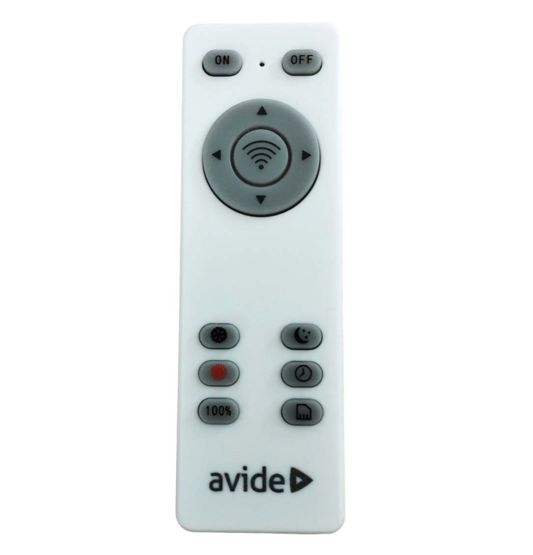 Αναβάθμισε τον φωτισμό του χώρου σου με το τηλεχειριστήριο Avide για μοντέρνες πλαφονιέρες LED. Ρύθμισε εύκολα την ένταση και τη θερμοκρασία φωτός, δημιουργώντας την ιδανική ατμόσφαιρα κάθε στιγμή. Απόλαυσε άνετο και άμεσο έλεγχο χωρίς κόπο, με εργονομικό σχεδιασμό που εξασφαλίζει ευκολία στη χρήση και απόλυτη λειτουργικότητα.