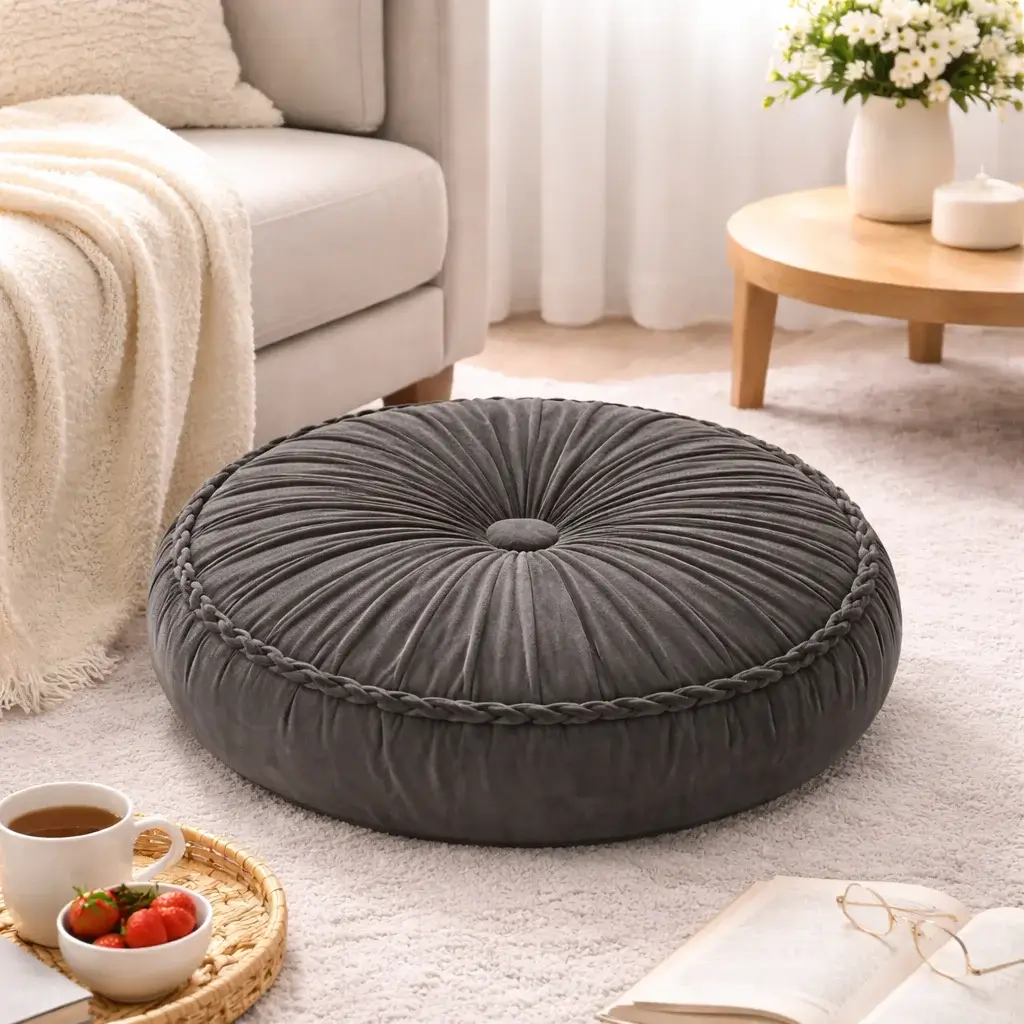 Το διακοσμητικό μαξιλάρι καθίσματος διαθέτει στρογγυλό σχήμα και καπιτονέ όψη που ταιριάζει εύκολα σε διαφορετικούς χώρους. Κατάλληλο για καναπέ, πολυθρόνα ή πάτωμα. Η κατασκευή του προσφέρει ευχάριστη αίσθηση στην καθημερινή χρήση. Οι δύο διαθέσιμες διαστάσεις καλύπτουν διαφορετικές ανάγκες και επιλογές τοποθέτησης. Αποτελεί μια πρακτική λύση για το σαλόνι, το υπνοδωμάτιο ή χώρους χαλάρωσης.