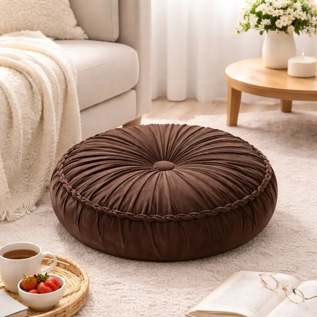 Το διακοσμητικό μαξιλάρι καθίσματος διαθέτει στρογγυλό σχήμα και καπιτονέ όψη που ταιριάζει εύκολα σε διαφορετικούς χώρους. Κατάλληλο για καναπέ, πολυθρόνα ή πάτωμα. Η κατασκευή του προσφέρει ευχάριστη αίσθηση στην καθημερινή χρήση. Οι δύο διαθέσιμες διαστάσεις καλύπτουν διαφορετικές ανάγκες και επιλογές τοποθέτησης. Αποτελεί μια πρακτική λύση για το σαλόνι, το υπνοδωμάτιο ή χώρους χαλάρωσης.