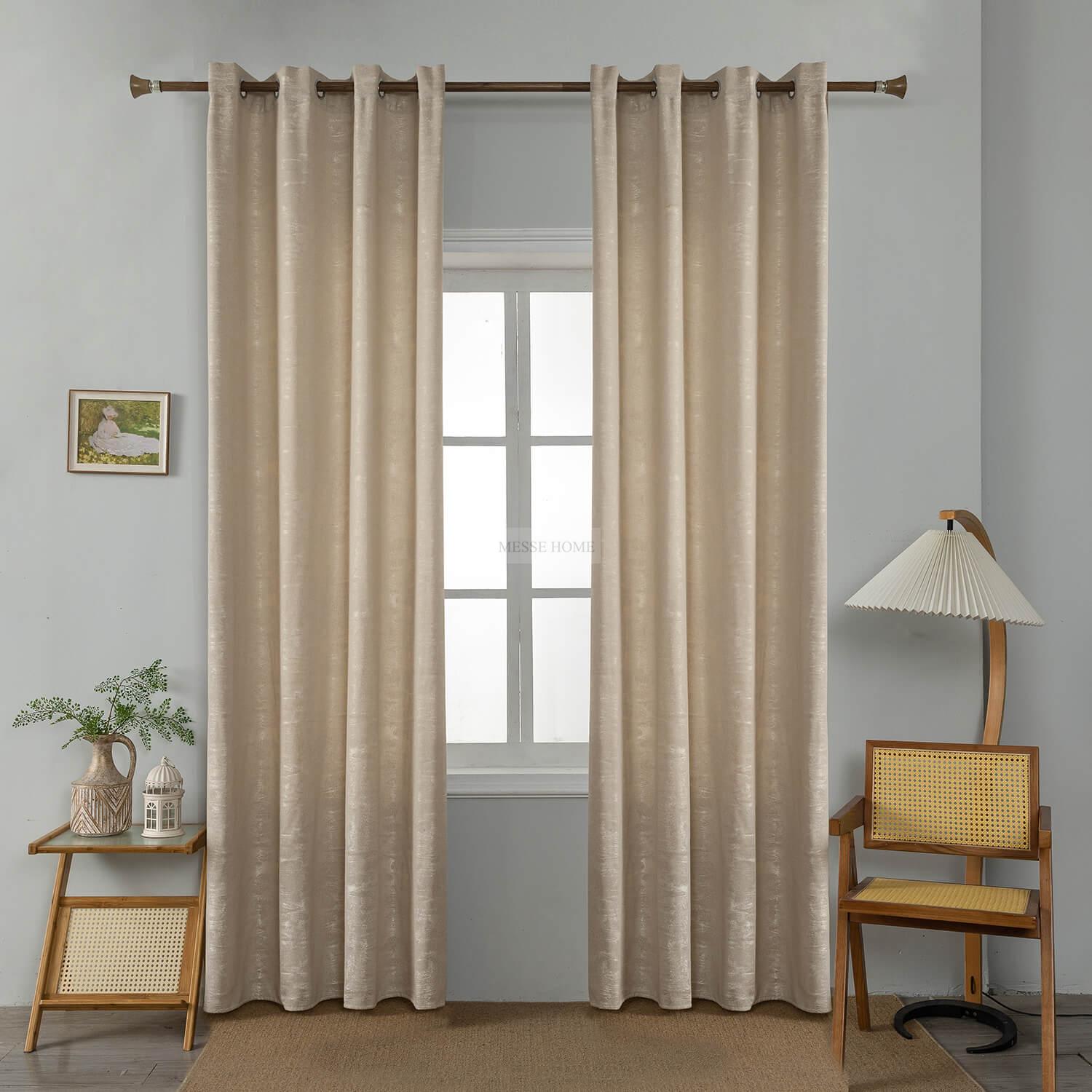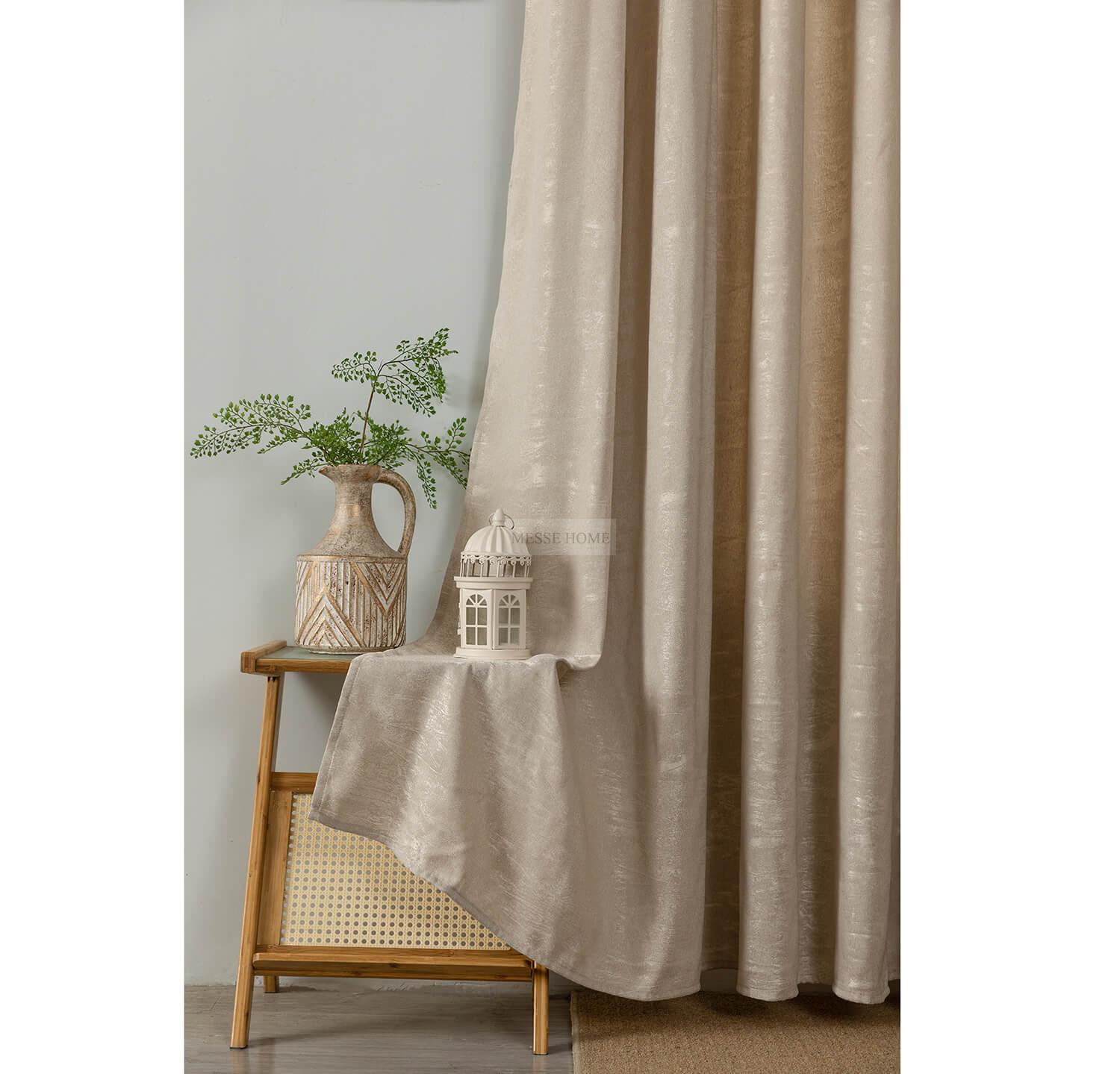 Ανανεώστε τον χώρο σας με την κουρτίνα μέτριας σκίασης MESSE HOME. Το κομψό μπεζ χρώμα χαρίζει ζεστασιά και αρμονία, ενώ η υφή της δημιουργεί μια διακριτική λάμψη που αναδεικνύει κάθε δωμάτιο.