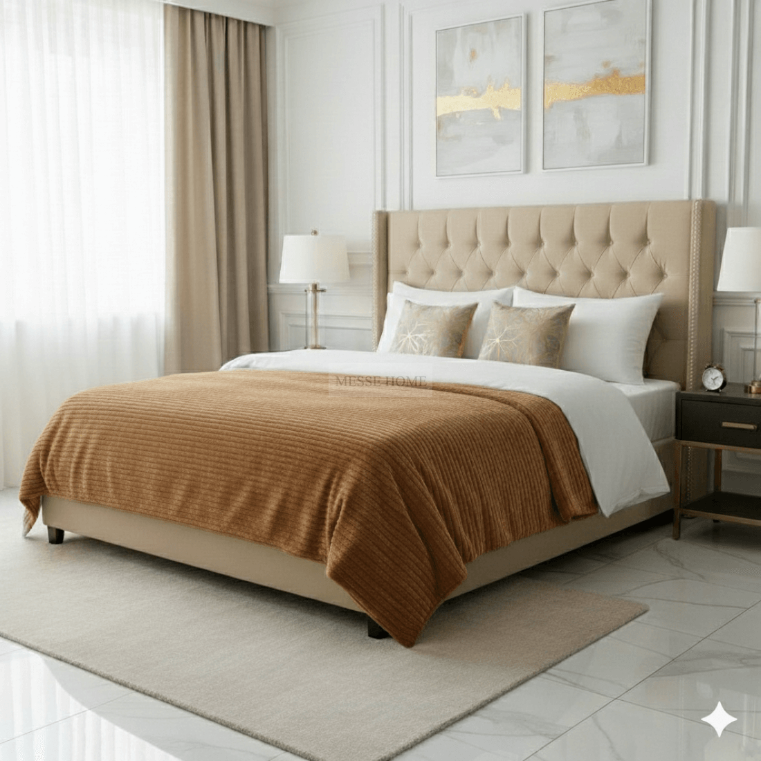 Δημιουργεί θαλπωρή, αναβαθμίζει την αισθητική της κρεβατοκάμαρας και χαρίζει αίσθηση πολυτέλειας. Το έντονο ώχρα χρώμα προσθέτει ζωντάνια και ζεστασιά στον χώρο, ενώ η ποιοτική κατασκευή εξασφαλίζει αντοχή και καθημερινή χρήση χωρίς φθορές.