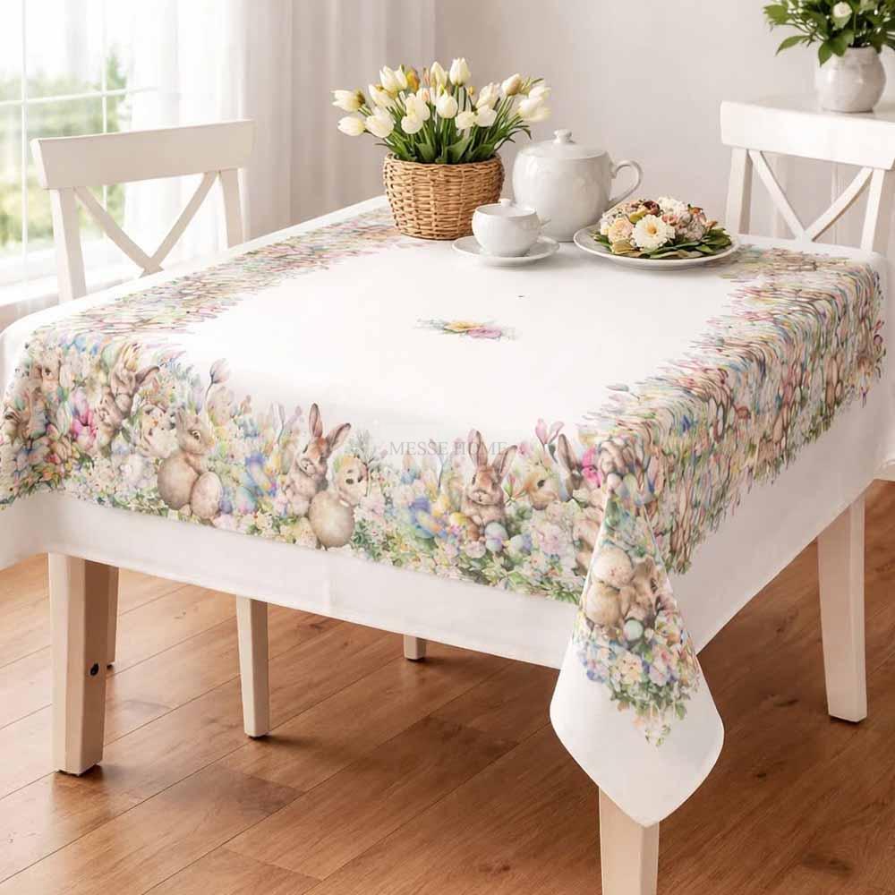 Το πασχαλινό τραπεζομάντηλο -4 δίνει στο τραπέζι σας γιορτινή και ανοιξιάτικη αίσθηση με χαρούμενα σχέδια από λαγουδάκια και λουλούδια. Δημιουργείτε εύκολα ένα πιο ζεστό και προσεγμένο περιβάλλον για το Πάσχα, την άνοιξη και κάθε οικογενειακό τραπέζι.