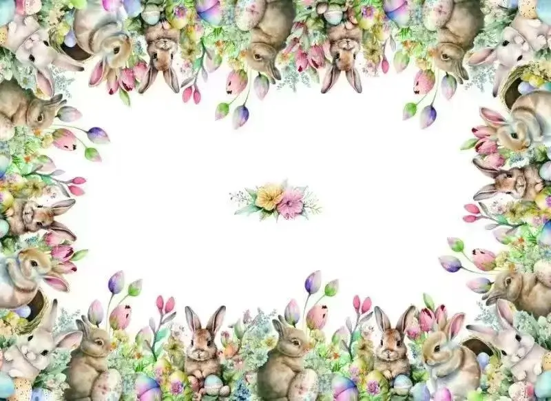 • Πασχαλινό σχέδιο με λαγουδάκια και λουλούδια