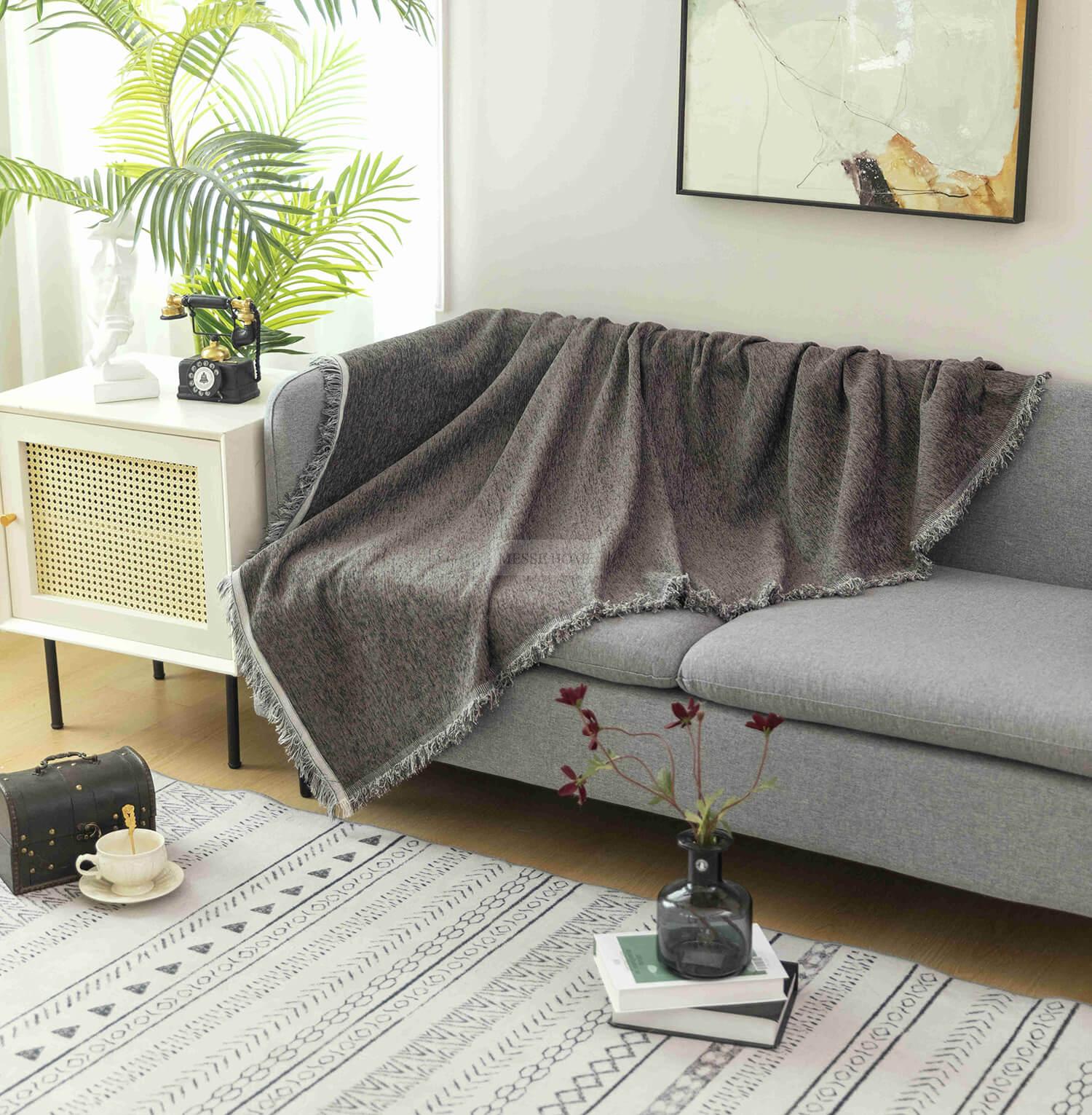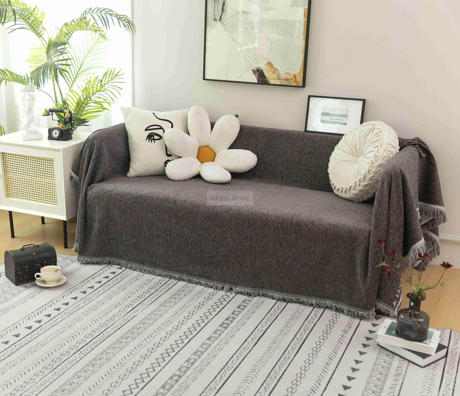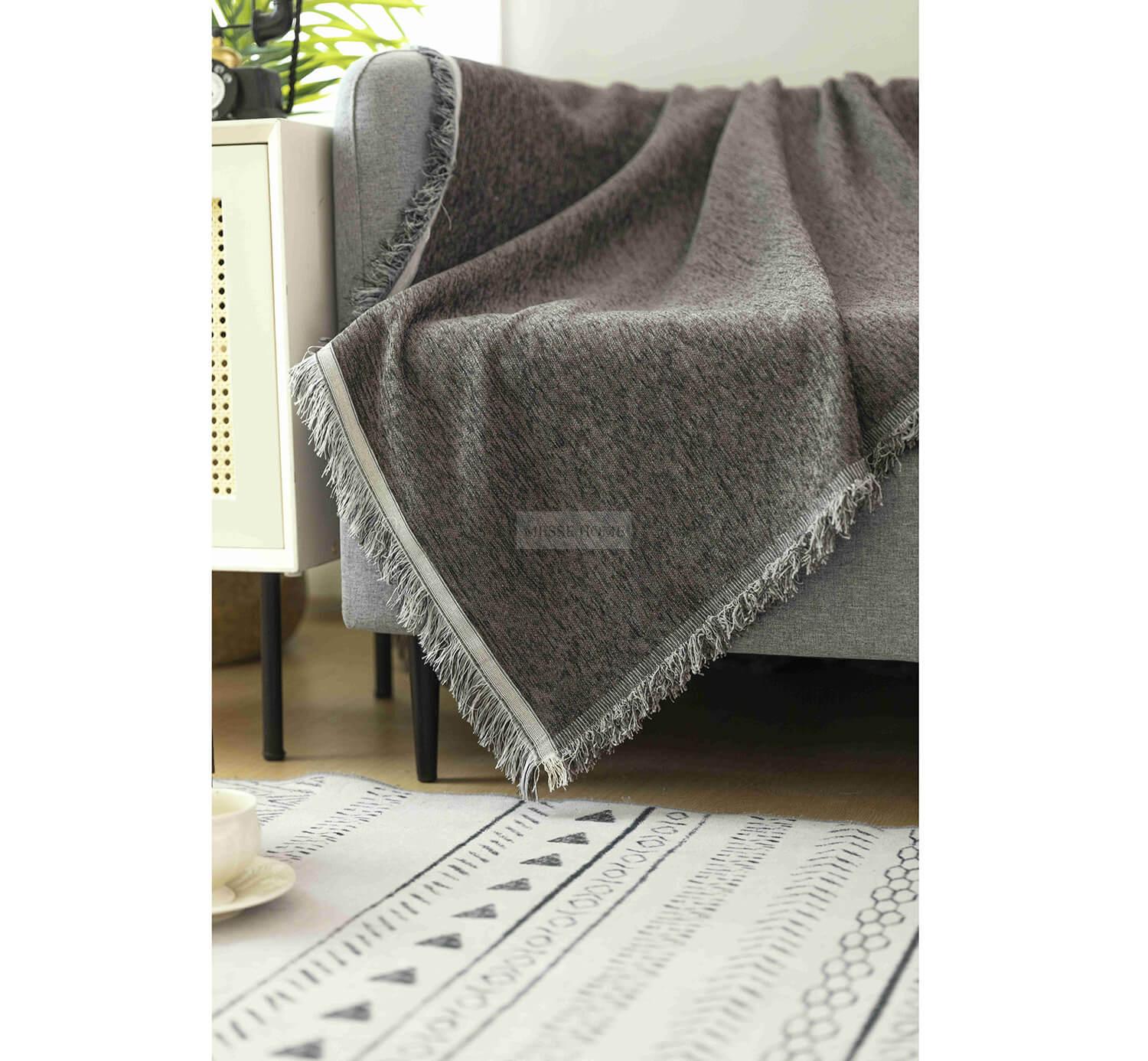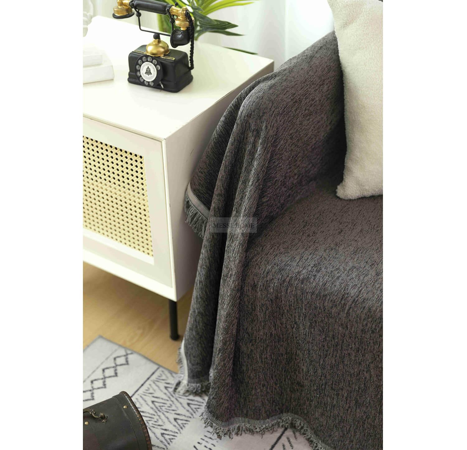 Ριχτάρι Chenille Με Κρόσια C100-15 Ανθρακί (4 Διαστάσεις)