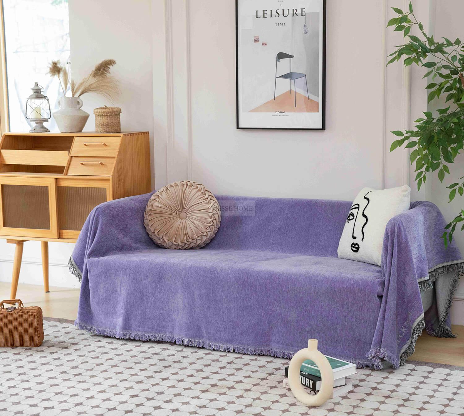Ριχτάρι Chenille Με Κρόσια C100-6 Λιλά (4 Διαστάσεις)