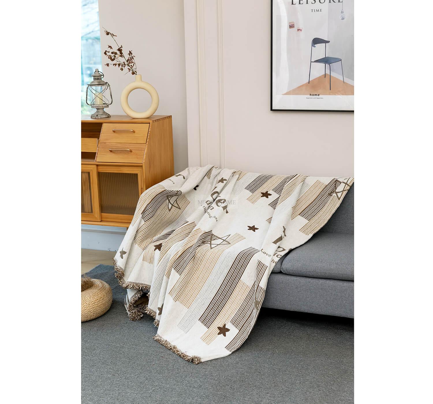 Ριχτάρι Chenille Με Κρόσια C9-4 Μπεζ-Καφέ (4 Διαστάσεις)