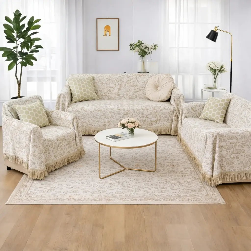 Το ριχτάρι C22-1 Μπεζ δίνει δροσερή αίσθηση και προστατεύει τον καναπέ, ανανεώνοντας εύκολα το σαλόνι σας. Το ελαφρύ, αναπνεύσιμο ύφασμα και τα διακριτικά κρόσσια προσθέτουν κομψή πινελιά σε κάθε χώρο.
