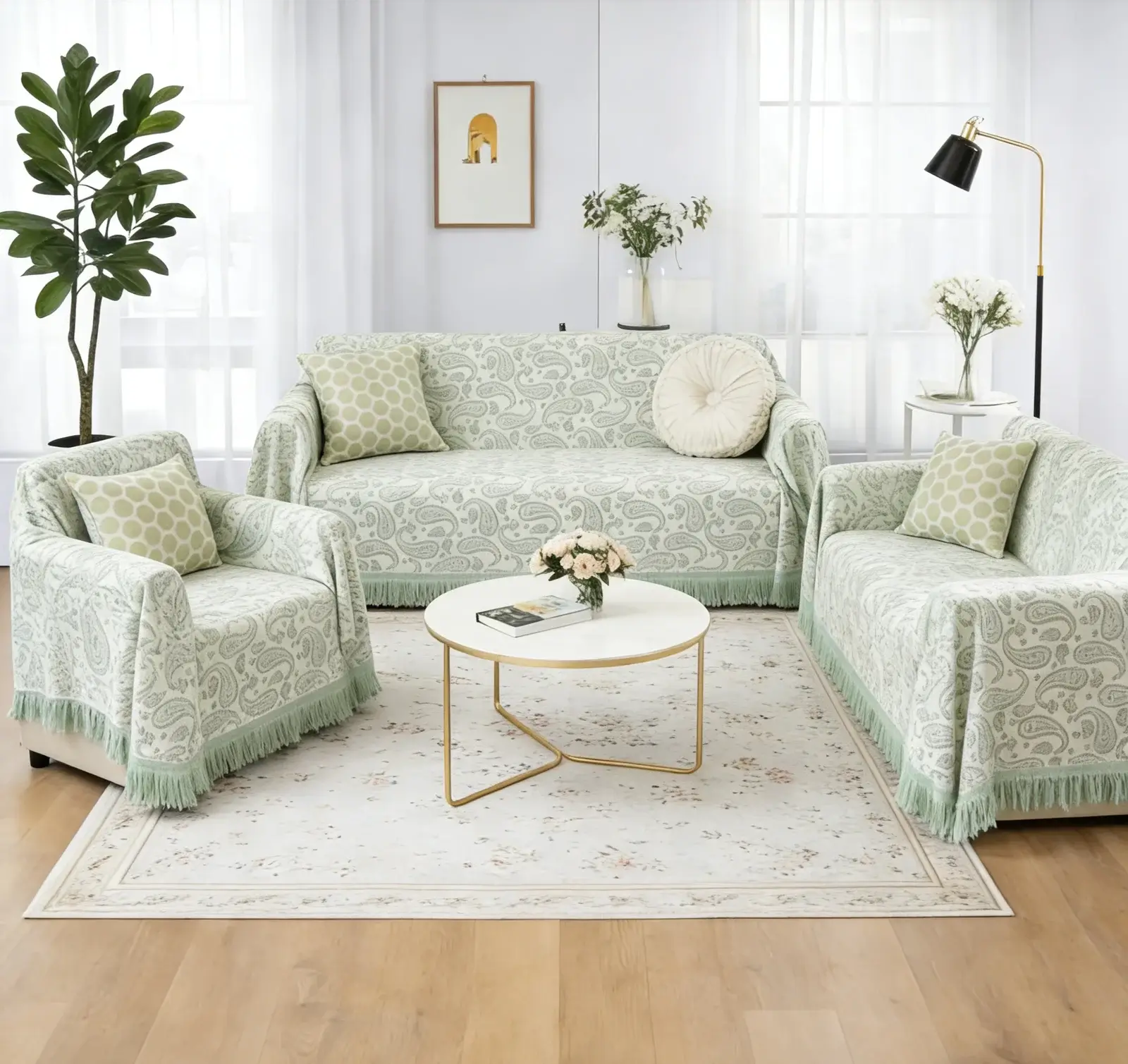 Το ριχτάρι C22-5 Βεραμάν δίνει δροσερή αίσθηση και προστατεύει τον καναπέ, ανανεώνοντας εύκολα το σαλόνι σας. Το ελαφρύ, αναπνεύσιμο ύφασμα και τα διακριτικά κρόσσια προσθέτουν κομψή πινελιά σε κάθε χώρο.