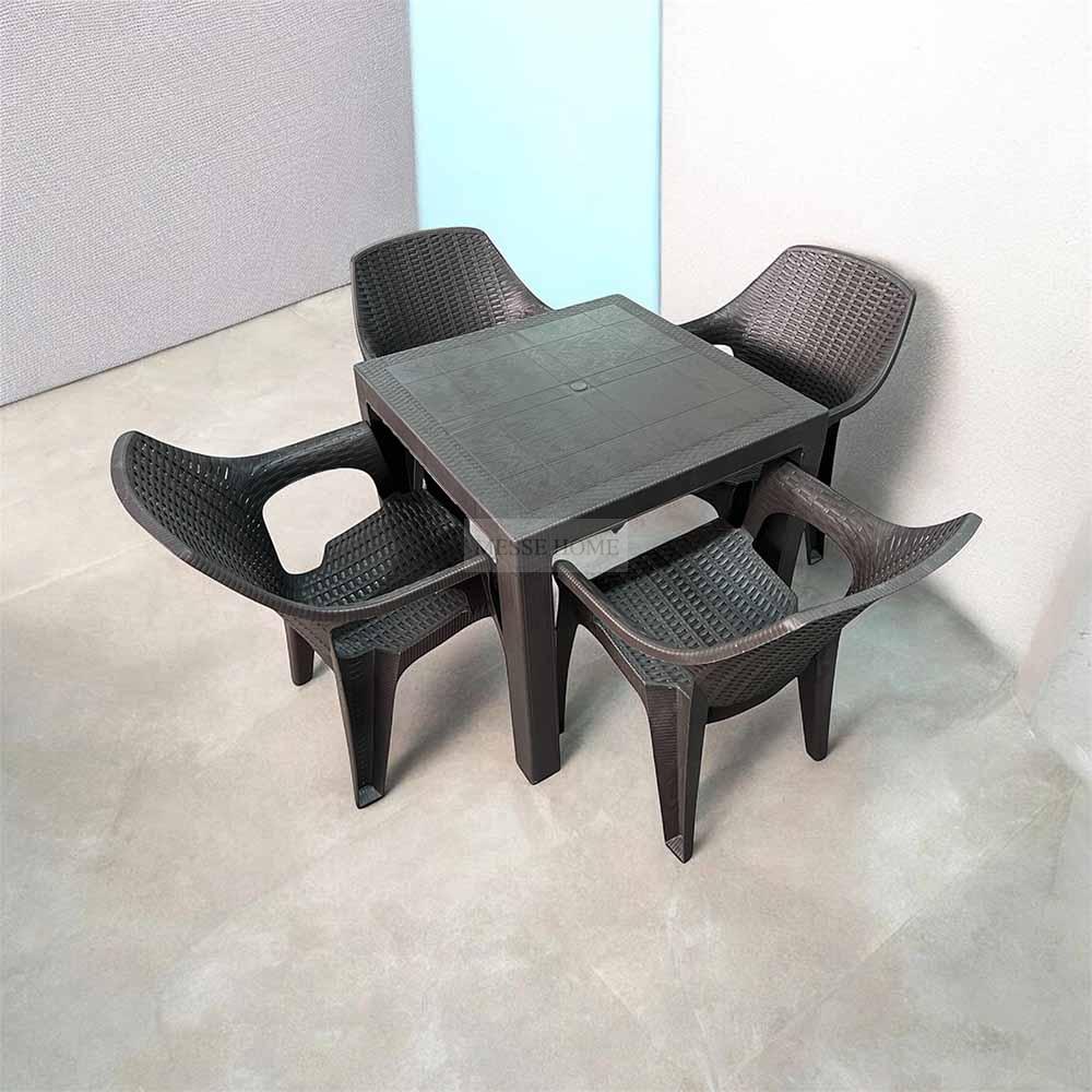 Το τραπέζι παρέχει σταθερότητα και αντοχή, ενώ οι καρέκλες διαθέτουν άνετο κάθισμα με στιβαρή κατασκευή. Αντέχει σε ήλιο και βροχή, χωρίς να απαιτεί συντήρηση.