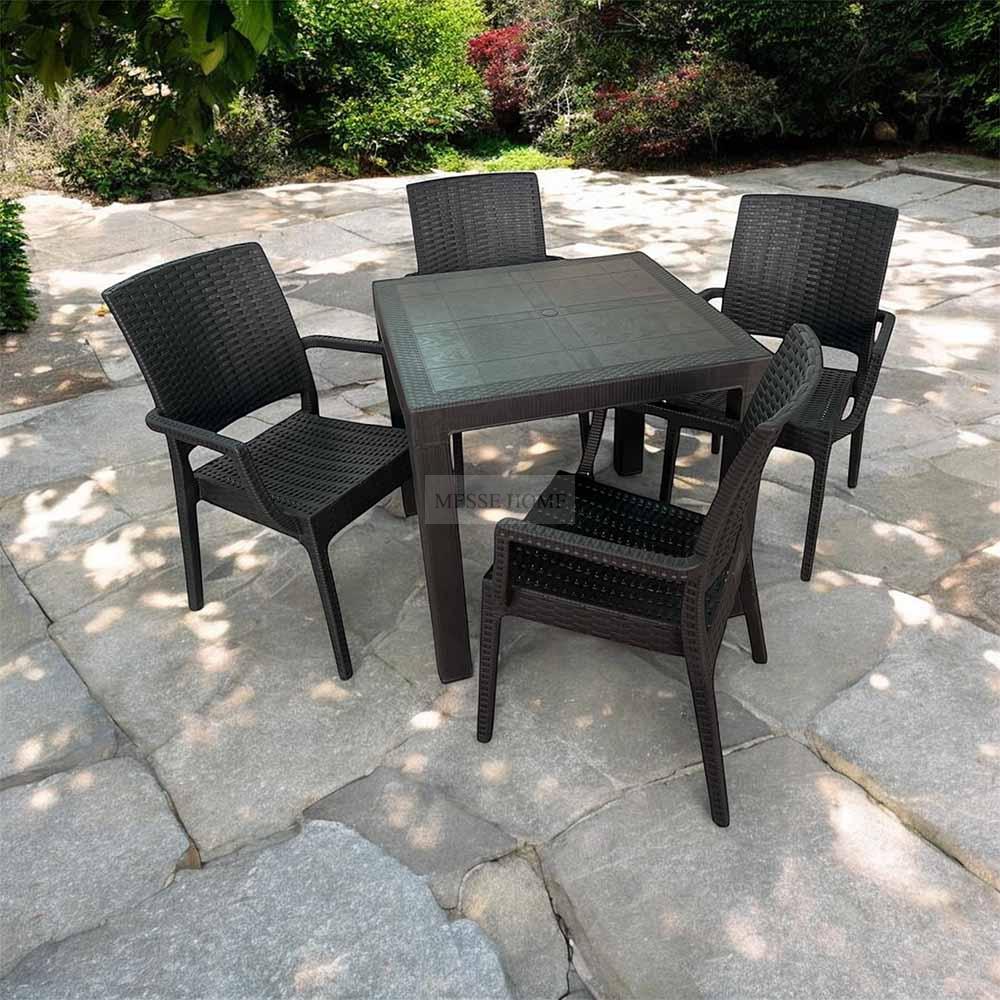 Το σετ τραπεζαρίας Elit Rattan αναβαθμίζει τον εξωτερικό χώρο με άνεση και στυλ. Το ενισχυμένο πολυπροπυλένιο με ματ υφή προσφέρει αντοχή και πρακτικότητα. Το σετ περιλαμβάνει 4 καρέκλες και 1 τραπέζι, ιδανικά για κήπους, βεράντες ή επαγγελματικούς χώρους. Στοιβάζετε εύκολα τις καρέκλες για εξοικονόμηση χώρου, ενώ το υλικό αντέχει σε ήλιο, βροχή και υγρασία χωρίς φθορές.