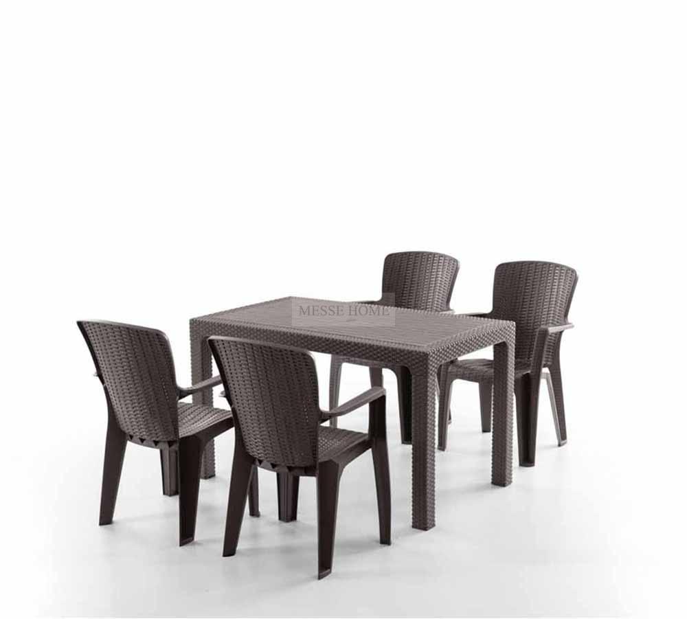 Το τραπέζι παρέχει σταθερότητα και αντοχή, ενώ οι καρέκλες διαθέτουν άνετο κάθισμα με στιβαρή κατασκευή. Αντέχει σε ήλιο και βροχή, χωρίς να απαιτεί συντήρηση.