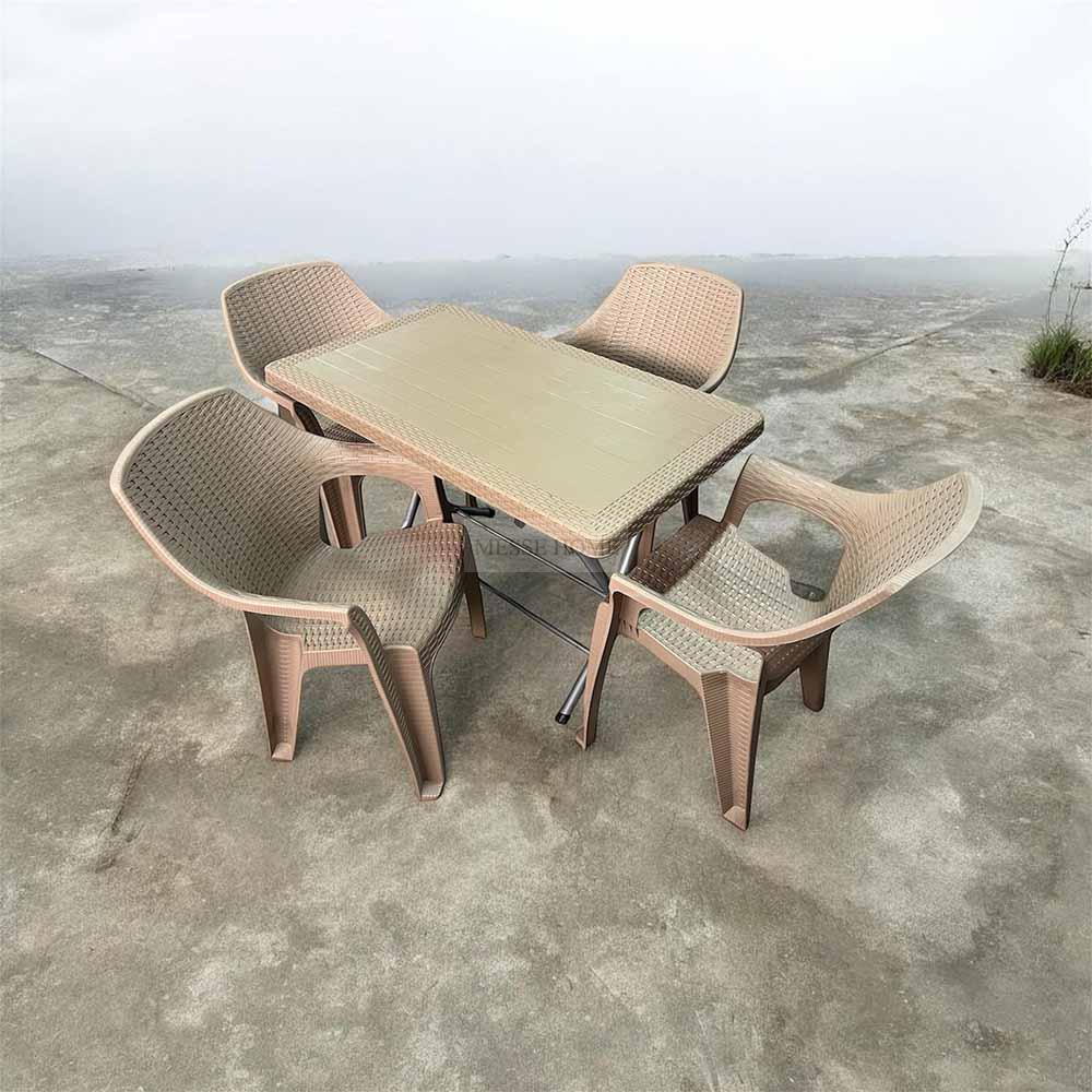 Το σετ τραπεζαρίας Terra Queen Rattan συνδυάζει άνεση και λειτουργικότητα για κάθε εξωτερικό χώρο. Το ανθεκτικό πολυπροπυλένιο με ματ υφή προσφέρει μεγάλη αντοχή στη χρήση και στις καιρικές συνθήκες. Το σετ περιλαμβάνει 4 άνετες καρέκλες και 1 τραπέζι με μεταλλική πτυσσόμενη βάση, ιδανικό για εύκολη αποθήκευση και μεταφορά.