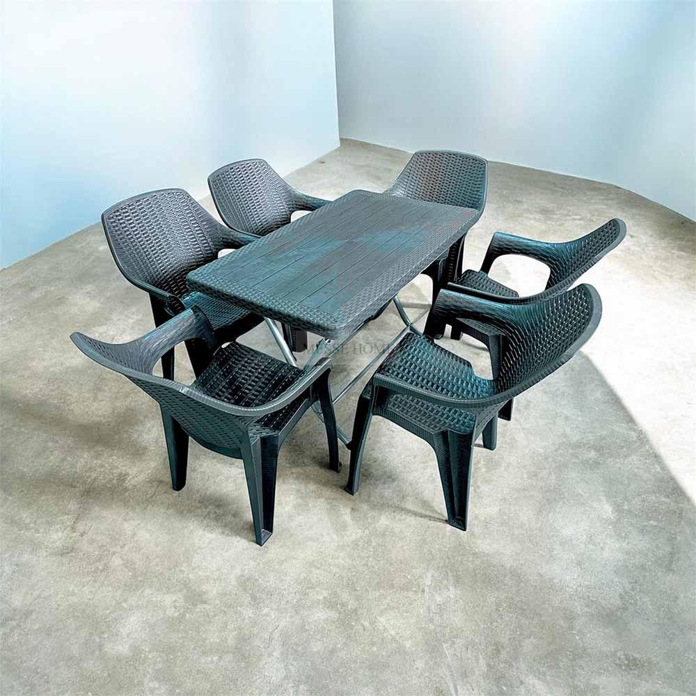 Το σετ τραπεζαρίας Terra Queen Rattan προσφέρει άνεση και πρακτικότητα σε κάθε εξωτερικό χώρο. Το ανθεκτικό πολυπροπυλένιο με ματ υφή εξασφαλίζει μεγάλη αντοχή στη χρήση και στις καιρικές συνθήκες. Το σετ περιλαμβάνει 6 ευρύχωρες καρέκλες και 1 τραπέζι με μεταλλική πτυσσόμενη βάση, ιδανικό για εύκολη αποθήκευση και μεταφορά.