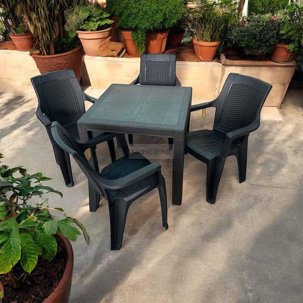 Η ματ υφή rattan χαρίζει μοντέρνα αισθητική και ταιριάζει εύκολα σε κήπους, βεράντες και επαγγελματικούς χώρους. Το σετ περιλαμβάνει τέσσερις καρέκλες και ένα τραπέζι, καλύπτοντας πλήρως τις ανάγκες καθημερινής χρήσης.