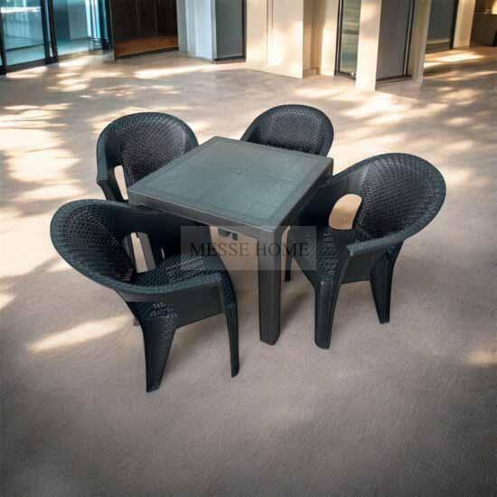 Η ματ υφή rattan χαρίζει μοντέρνα εμφάνιση και ταιριάζει ιδανικά σε κήπους, βεράντες και επαγγελματικούς χώρους. Το σετ περιλαμβάνει τέσσερις καρέκλες και ένα τραπέζι, καλύπτοντας πλήρως τις ανάγκες καθημερινής χρήσης.