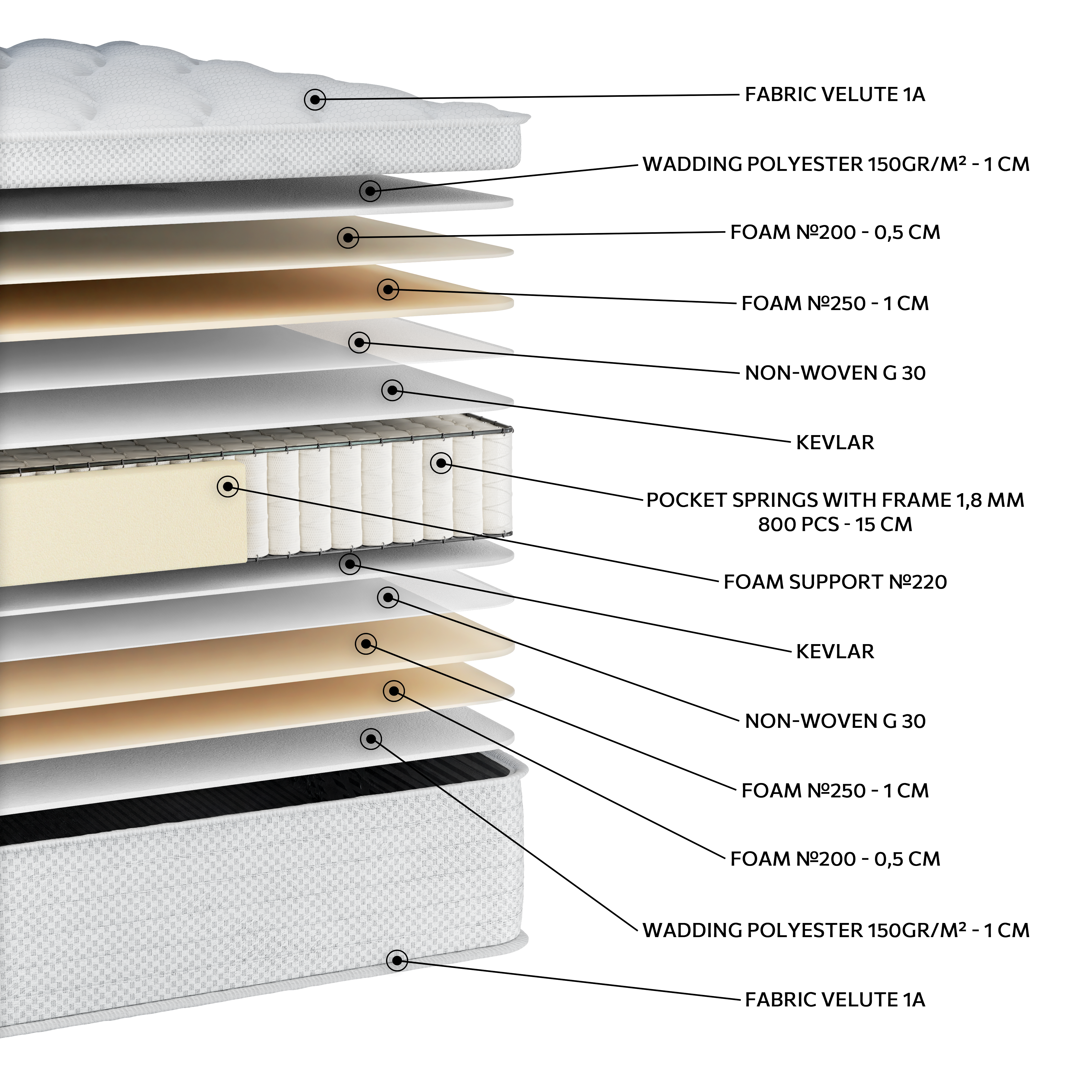 Το White Pocket EN21 προσφέρει σκληρή αίσθηση, εξατομικευμένη στήριξη με ανεξάρτητα ελατήρια και άνεση με εργονομικές στρώσεις αφρού. Το ύφασμα Velute 1A διατηρεί το στρώμα δροσερό και υγιεινό, προσφέροντας ευχάριστη εμπειρία ύπνου κάθε βράδυ.